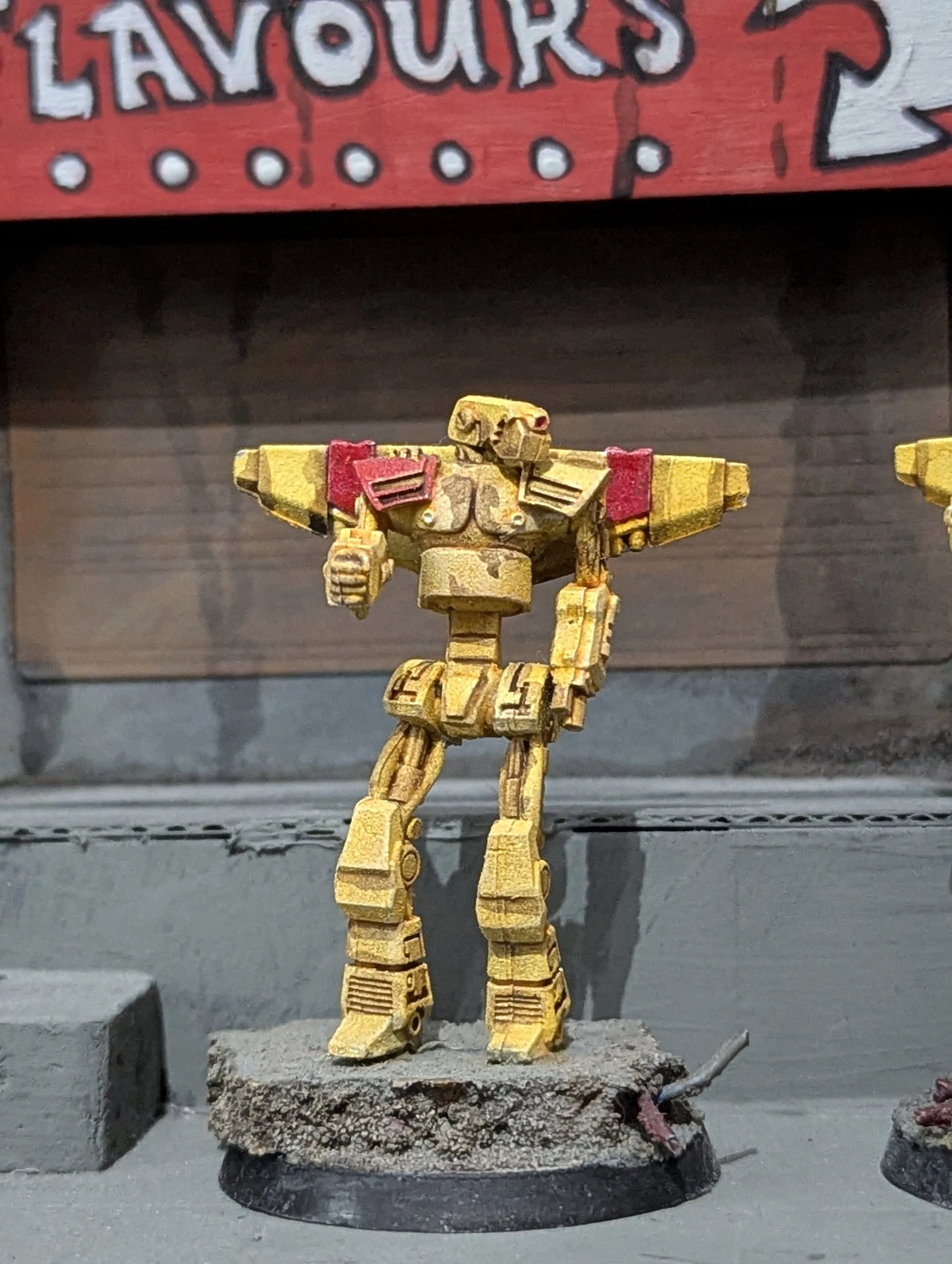 Cerberus and Argus: The Twin Sentinels of the Sector 102 Spillways. Two ominous figures stand perpetually vigilant at the towering entrance to Sector 102's spillways. Cerberus and Argus, a pair of antiquated yet brutally effective security droids, are relics from an era when Sector 102's infrastructure teetered on the brink of chaos. Their now slowly rusting yellowed chassis gleam faintly under the murky spillway entrance lights, and their imposing frames are scarred by years of violent encounters with intruders foolish enough to test their resolve. Dubbed "The Twin Sentinels" by the truckers, Cerberus and Argus operate with a precision that borders on the unnerving. Equipped with advanced motion sensors and facial recognition software, they are programmed to distinguish friend from foe in milliseconds. But their mercy is limited—those who approach without the proper security clearance are granted exactly one warning, delivered in Cerberus's deep, synthetic growl or Argus’s clipped, metallic snarl. If you ignore the warning, the droids' crimson optics glow brighter as their integrated laser rifles come online with a foreboding hum. The last sound many trespassers hear is the sharp crack of ionized air before a precision beam eliminates the threat. Cerberus and Argus aren't just machines; they're legends whispered about in the back alleys of Mega-City One. Some claim they've been standing at the gates for over a century, their AI steadily learning, adapting, and growing more ruthless. Others speak of "hacks"—coded phrases or gestures rumored to pacify the droids—but no one alive has verified these claims.