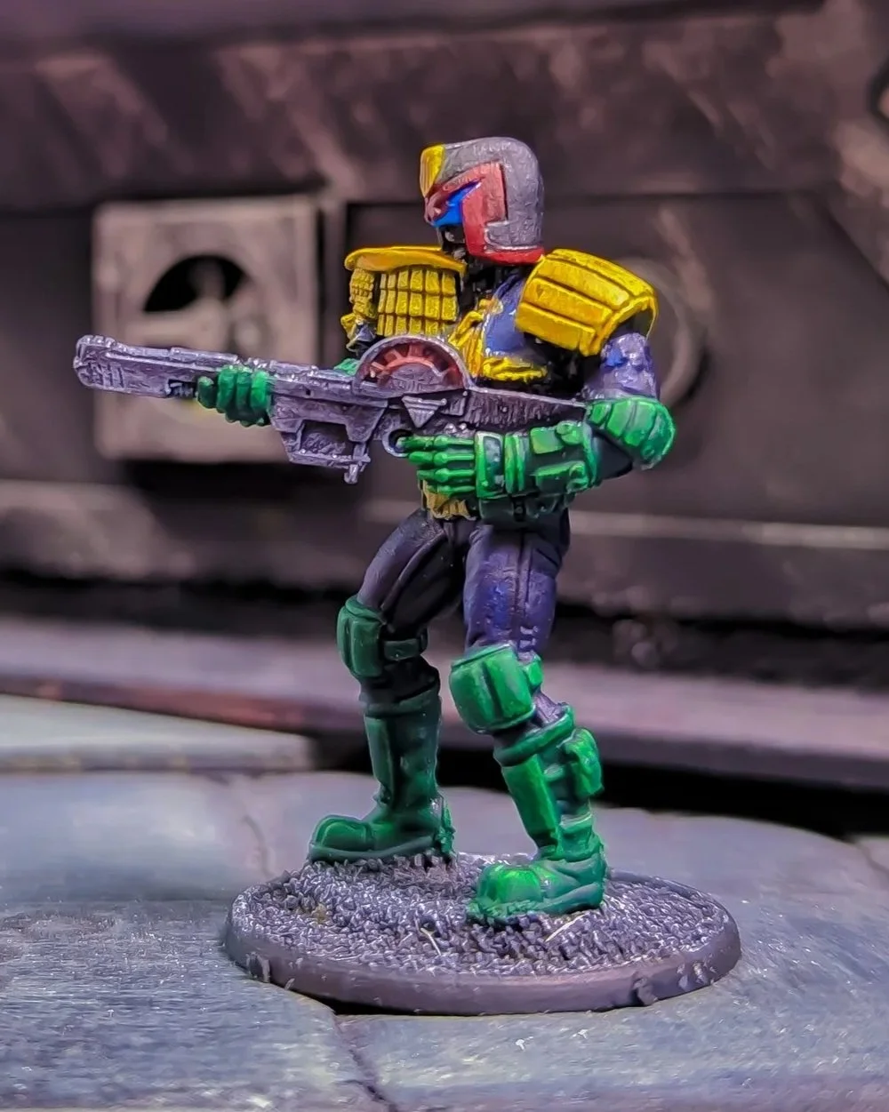 Originally from Uranium City, Veegum transferred in during the wave of reinforcements following the Day of Chaos. Like many others, he was thrown into the deep end of Mega-City One life. Unlike most, he adapted quickly, finding his place not in the noise of the streets, but above them, watching, waiting, calculating.