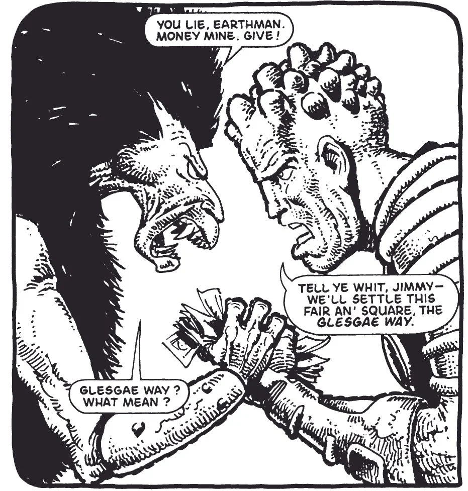 Encounters like the one on Burrito remind readers why the Strontium Dogs themselves—mutants forced into bounty hunting by discrimination—often appear almost heroic by comparison.